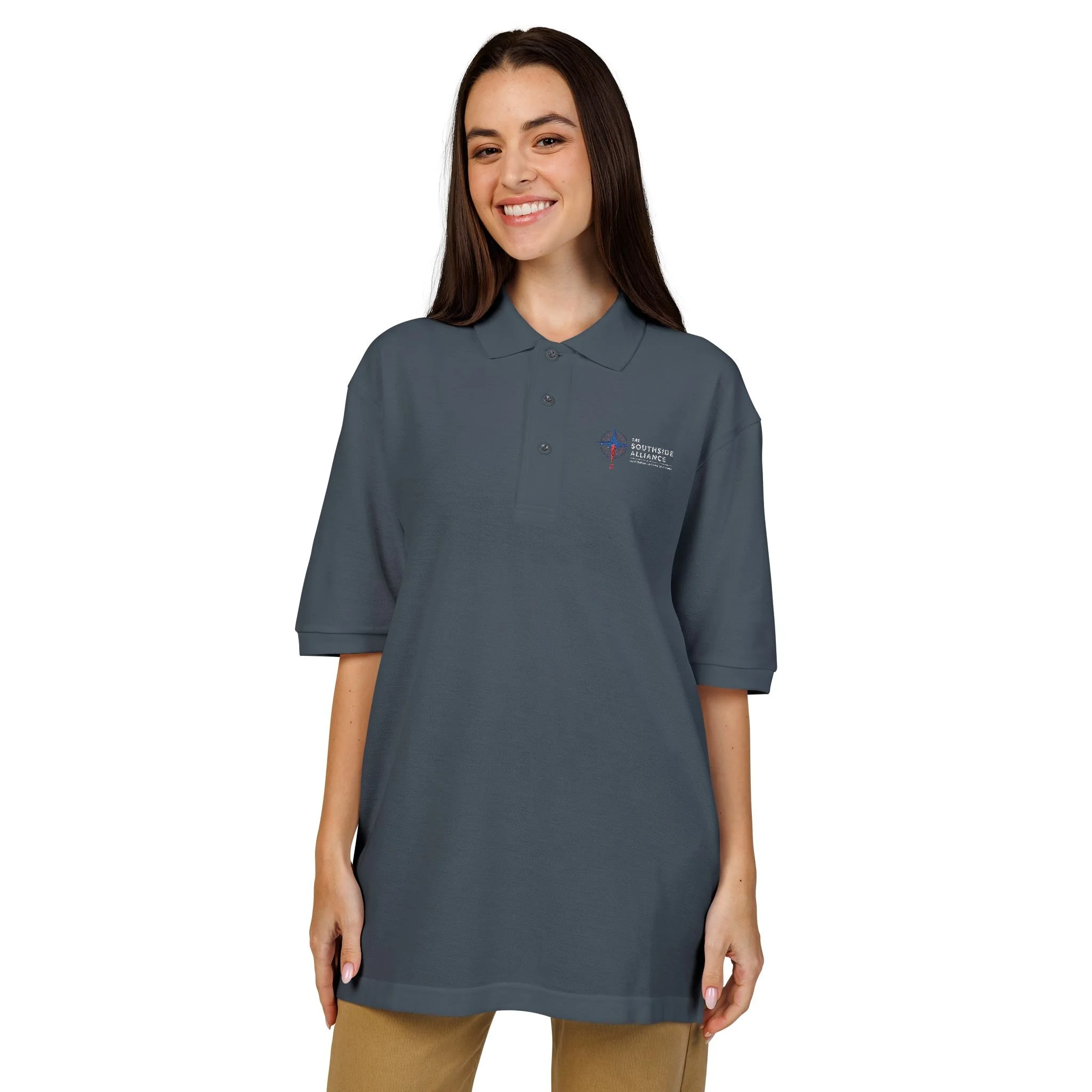 A classic polo designed for comfort, durability, and everyday professionalism. This embroidered Port Authority K500 Unisex Polo features the Southside Alliance emblem, making it a clean and understated way to represent Huntington’s Historic Southside, whether you are at a community event, meeting, or out around town.